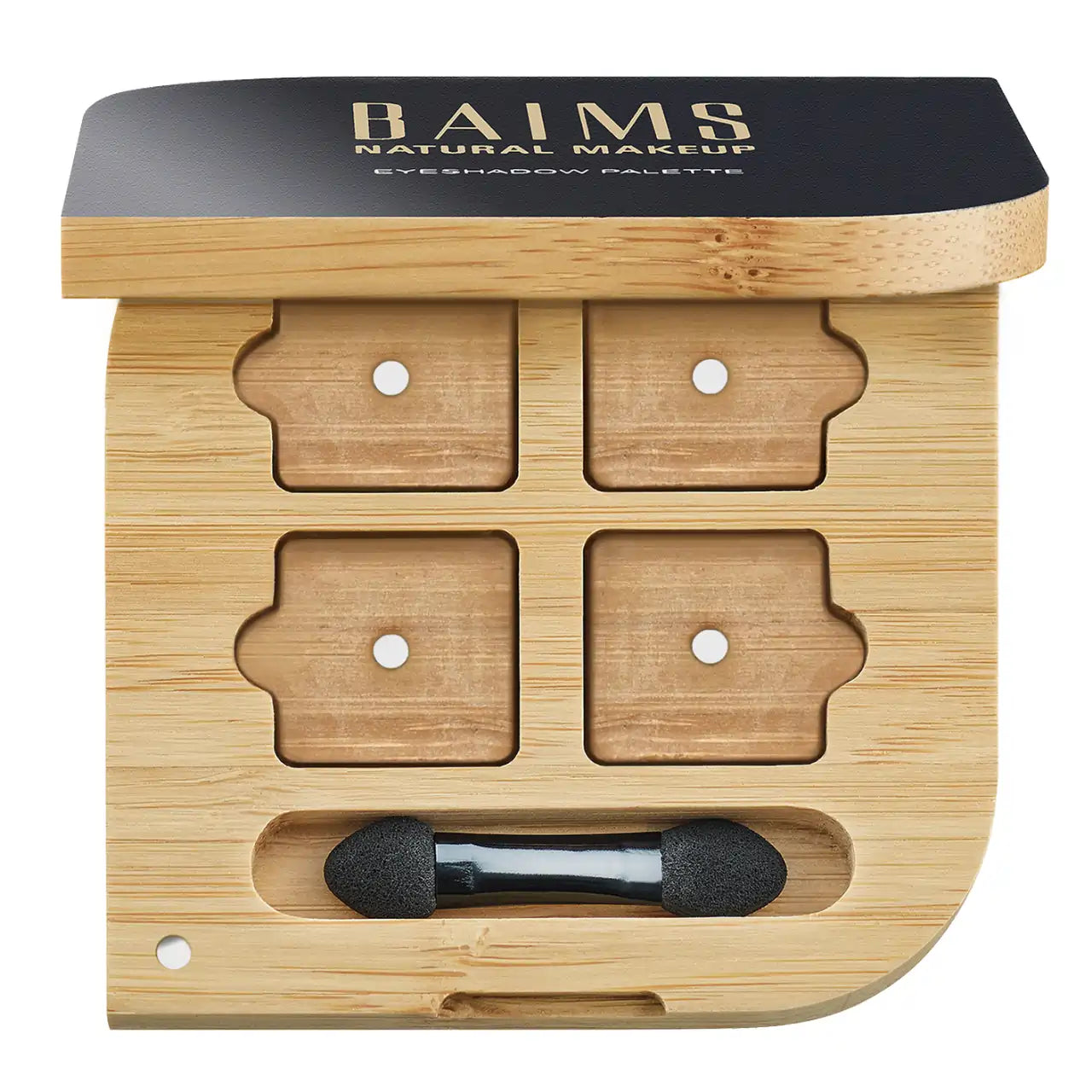 - Estojo vazio para quatro cores de sombras à sua escolha.