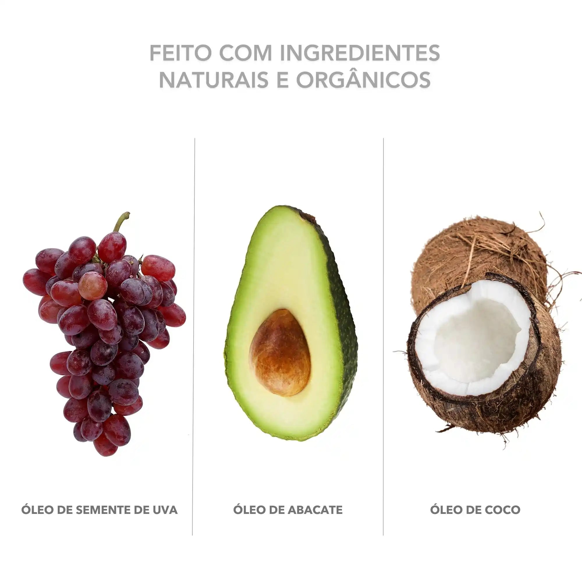 água, óleo de abacate, óleo de semente de uva, triglicerídeo caprílico/cáprico, éster funcional de xilitol