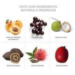 óleo de rícino*, poliglicerídeos hidroxiesteárico/linolênico/oleico, poliglicerídeos oleico/linoleico/linolênico, triglicerídeo caprílico/cáprico**, extrato de semente de damasco, mica, dióxido de silício, óleo de girassol, óleo de babaçu*, óleo de buriti*, óleo de açaí*, óleo de pracaxi*, extrato de alecrim, dextroalfatocoferol (vitamina e natural)