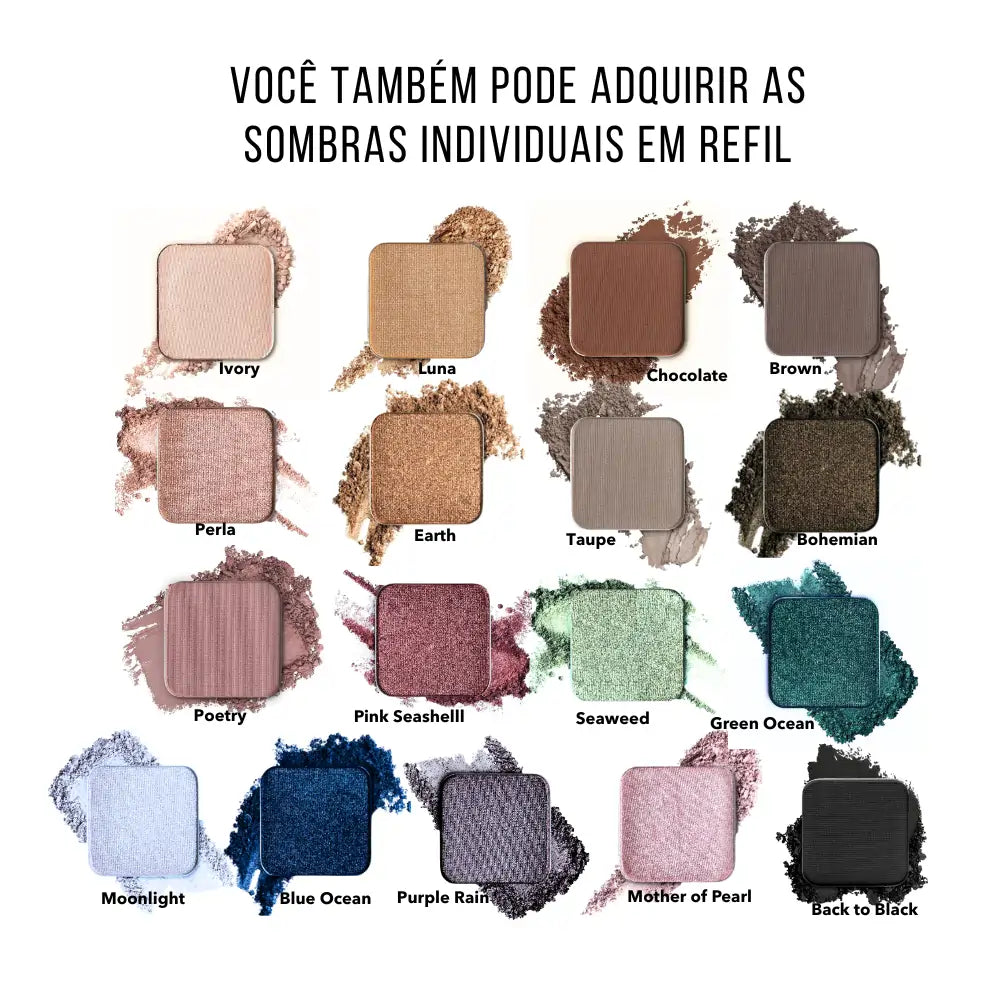 - Você também pode comprar as Sombras em refil individualmente e criar a sua própria paleta de cores na nossa Bamboo Palette