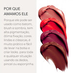 - Um multitasking líquido que pode ser usado como batom, blush e sombra para os olhos