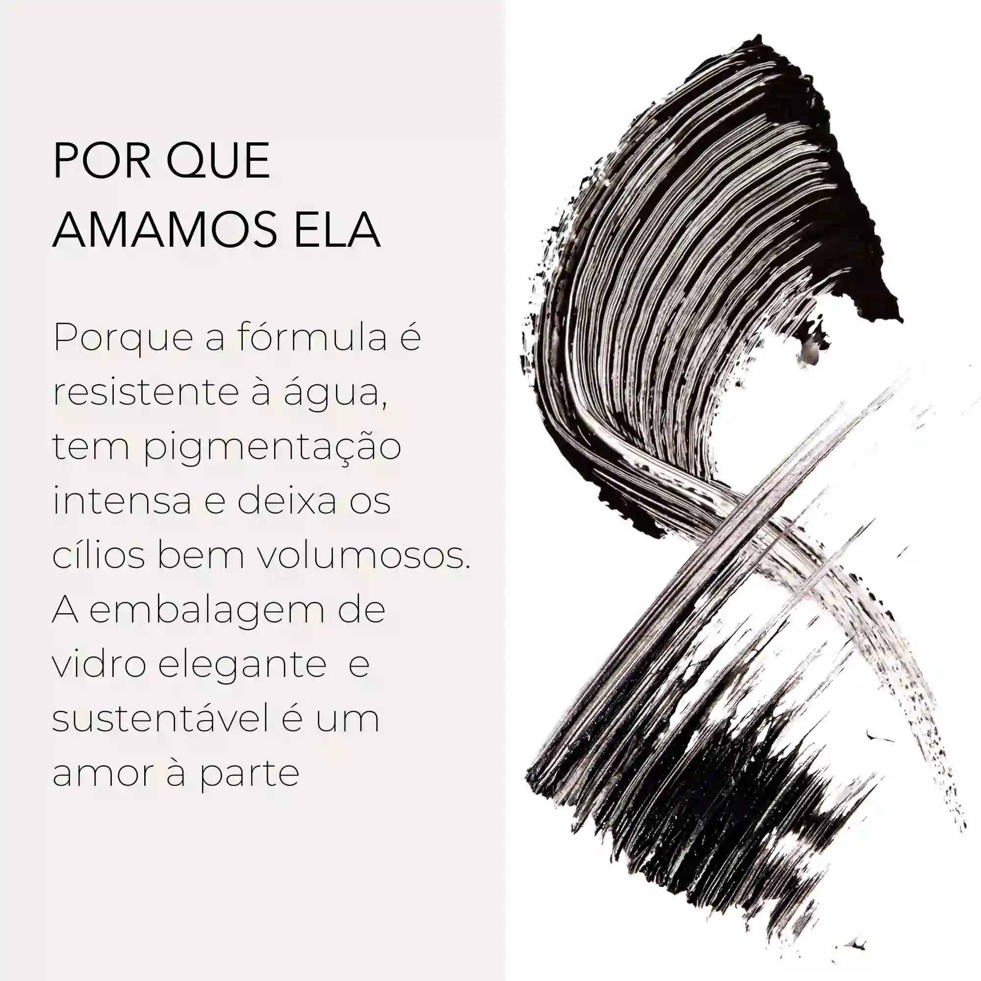 A primeira mascara de cílios no Brasil com embalagem feita de vidro e tampa de Bambu, garantindo o encontro de um design luxuoso com a sustentabilidade, que não abrimos mão.